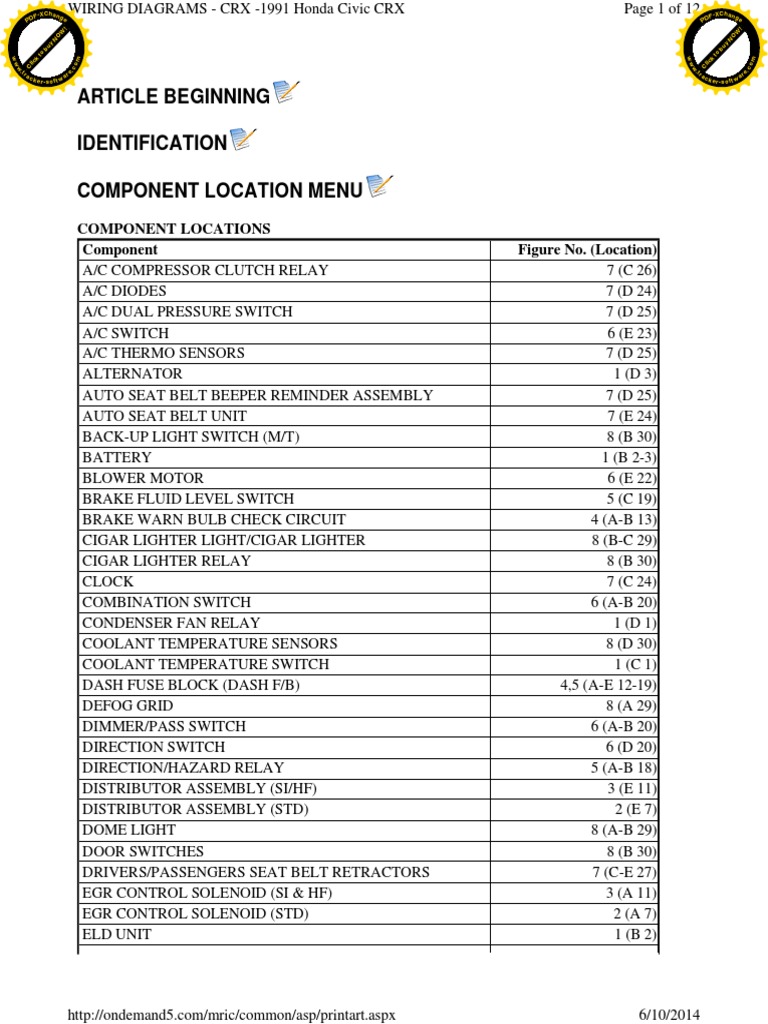 Details about1991 HONDA CIVIC CRX WIRING DIAGRAMS SCHEMATICS MANUAL SHEETS SET. 1991 HONDA CIVIC CRX WIRING DIAGRAMS SCHEMATICS MANUAL SHEETS SET. Report item. - opens in a new window or tab. Description. Shipping and payments. eBay item number: 361930877144. Seller assumes all responsibility for this listing.
