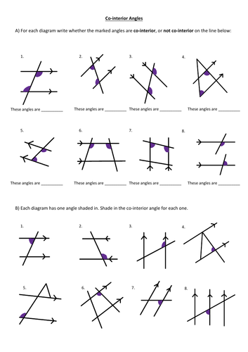 Use the diagrams to describe the steps you would take to construct a line perpendicular to line m through point P. which is not on line m. Answer: Step 1: The fixed end of the compass is placed on P and an arc is drawn through the given line such that this intersects the given line at 2 points, A and B such that A and B are equidistant from P. Question 11. corresponding Answer: Question 12. alternate interior Answer: We know that, "Alternate Interior angles" are a pair of angles on the inner side of each of those two lines but on opposite sides of the transversal. Hence, From the given figure, We can conclude that the alternate interior angles are: ∠4 and ∠5; ∠3 and ∠6 ... Angle 1 is in the upper left corner of the top intersection, and angle 8 is in the lower right corner of the bottom intersection, so they cannot be corresponding angles. Let's move to question 2. This fun worksheet bundle includes 5 worksheets with a corresponding answer key for teacher use. Angles in triangles worksheets. To find the unknown angle add up the known angles and subtract from 180. The pdf has a high resolution and is made to fit 8 5 11 paper seamlessly. In addition there is a joke hidden in the qr code that helps them ...