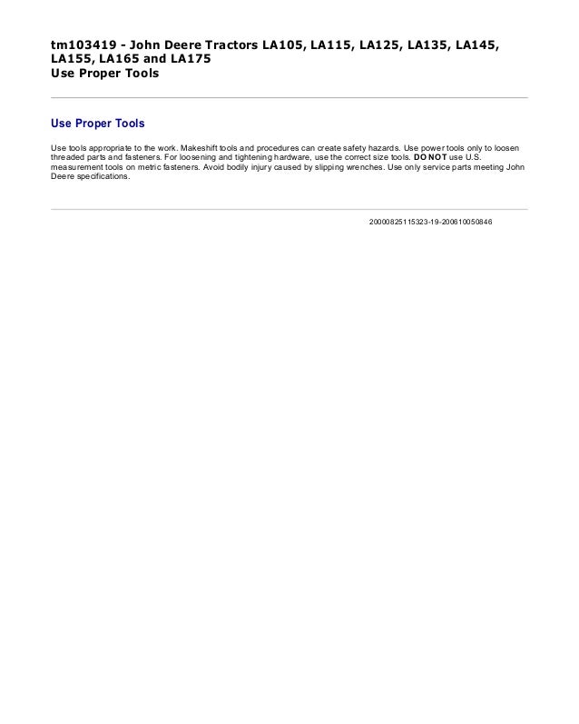 John Deere La105 La115 La125 La135 La145 La155 La165 La175 Lawn Tractors Technical Manual Tm103419 Truck Service Manual Store