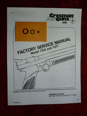 1377 Owner's Manual & EVP (1977-1981) Model Number. 1377. Name / Description. American Classic. Pneumatic, .177 cal., single shot. First variant w/manual cocking & steel breech. Dates of Manufacture. 1977-1981. Crosman Model 2100 177 Pellet Rifle Parts Hammer Assembly. 177 To locate the parts you need, click on the name of the manufacturer, then click on the Model number of your gun. This gun part came from a working condition complete Crosman Model 120(see my other items for sale) The stock shows typical scratches along with some paint specks. Crosman 1377,1322,2289,2240,2250,2260 steel breech, custom bolt, custom screw. This is a Crosman steel breech with a Discovery Rifle.22 bolt and upgraded breech screw. The breech has been internally de-burred and polished. The handle and bolt have been polished where they contact the breech. The parts kits on these pages fit the current Crosman 1377 air pistols and other models that share common parts. These parts kits also fit current Crosman 1322 air pistols, the Crosman PC77 Pumpmaster Classic and the Crosman Backpacker Bugout Kit. Many kits also fit older versions of the Crosman 1377 and 1322 and similar models such as the 1789 ...