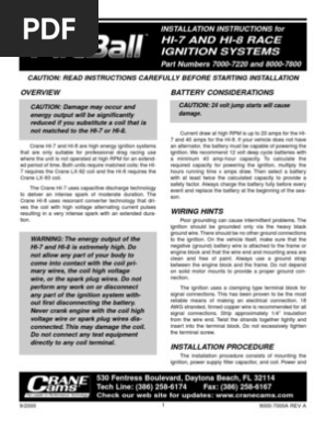 Hi 6 Cd Ignition Crane Cd Ignition With Rev Limiter Part Numbers 6000 6400 6000 6424 And 6000 6466 For More Information See Caution Read Instructions Carefully Before Starting Pdf Document
