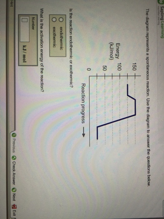 Use the diagram to answer the questions below. Is the reaction endothermic or exothermic? What is the activation energy of the reaction? This problem has been ...