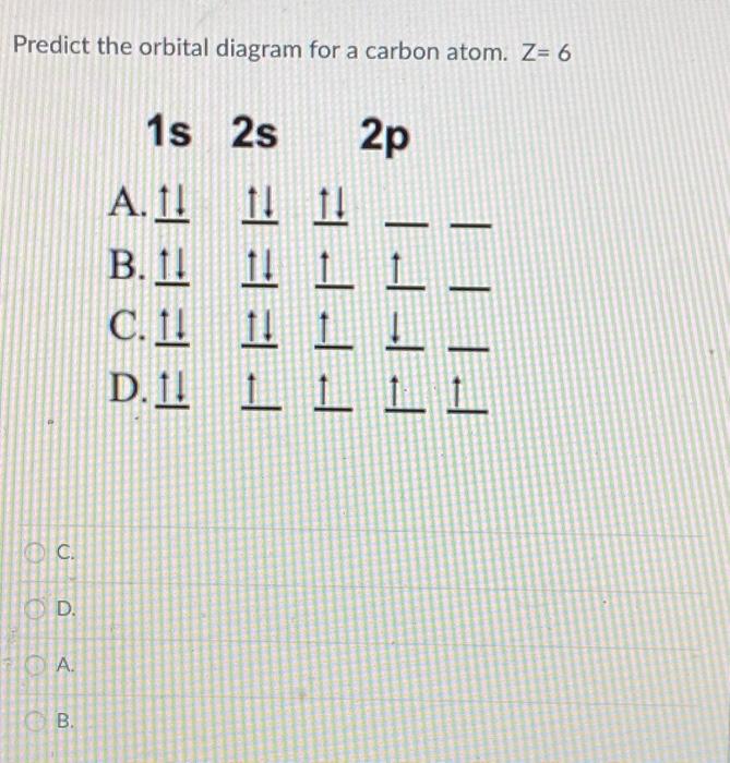Orbital diagram of carbon. 26.11.2021 - 445 Space Council creates momentum for the future of European space Correct answer to the question what key features should be present in the ir spectrum of your product if you successfully made the desired bromohydrin? what key features should be absent from the ir spectrum if the starting material was comp - hmwhelper.com The Basics of General, Organic, and Biological Chemistry A diagram showing the various kinds of electronic excitation that may occur in organic molecules is shown on the left. ... hybrid orbitals, molecular orbitals applied to simple diatomics, introduction to transition metal d-orbital splitting and band theory of metals and semiconductors. ... Carbon is unique among the other elements in that its ...
