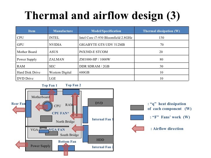 Computer case airflow diagram. I have a negative pressure setup in my rig (more exhaust than intake), I have 2 top exhaust + 1 back exhaust. 2 front intake. All 140 fans. The average temp reading when idle or doing small task such as web browsing seems to be around 72 degrees F, or 22 degrees C. Is this good or am I doing... LIAN LI is a Leading Provider of PC, Computer Case for PC Builders and Gamers. Water Cooling, RGB Fans, PC Desk Cases, Gaming Cases, PC Build. Our award-winning products started with premium aluminum cases to the more recent O11D, LANCOOL II and various accessories. Best Airflow Cases for Gaming and Work PC. These high airflow PC cases come with mesh front panel, plenty of fan mount points and good ventilation. High airflow computer cases keep the temperature of your internal components lower compared to other cases with a solid front panel or tempered glass front panel. They are also various spacious and are best for building a high-performance PC. The desktop PC airflow needs optimization, and this PC airflow guide will help you set up and choose a PC fan for airflow and proper cooling of your desktop PC. PC Case Airflow and Ventilation When you are setting up a PC fan, your main aim is to configure how the air will flow inside the case.