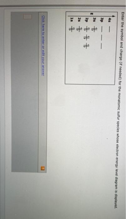 2 answersEnergy levels: 2, 8, 6 · Orbitals: 1s2 2s2 2p6 3s2 3p4 · If you need to fill in the little boxes, here's one for you. Each arrow represents one electron. You draw ...