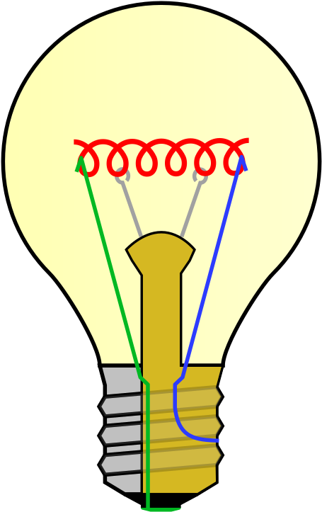 Light bulbs have a very simple structure. At the base, they have two metal contacts, which connect to the ends of an electrical circuit.