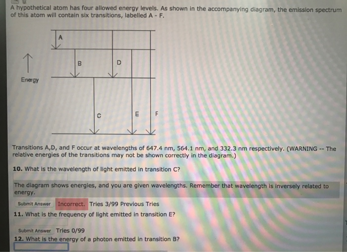 Oct 06, 2020 · For this question consider the figure to the right that shows an energy level diagram for a certain atom (not hydrogen). Several transitions are shown and labeled by letters. Note the diagram is not drawn to scale. (A) Which transition corresponds to the emission of the photon with the longest wavelength?