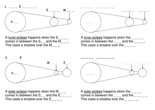 FREE Classroom Resource: Solar and Lunar Eclipse Worksheet - Download Use with your students to build a variety of skills