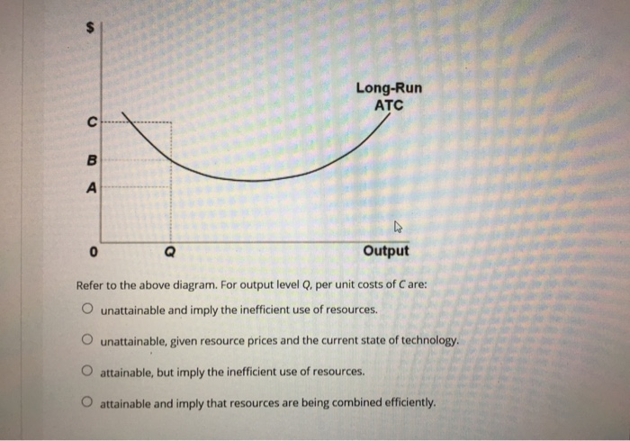 At output level Q total variable cost is: ... Refer to the above diagram, where variable inputs of labor are being added to a constant amount of property ...