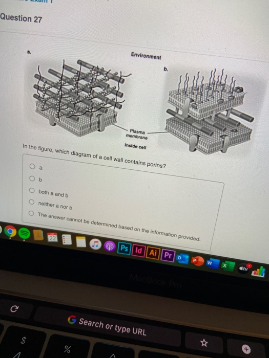 Science. Biology. Biology questions and answers. Environment a. b. Plasma membrane Inside cell In the figure, which diagram of a cell wall contains porins? a b both a and b neither a nor b The answer cannot be determined based on the information provided. Submit Previous Answers Request Answer X Incorrect; Try Again; One attempt remaining.
