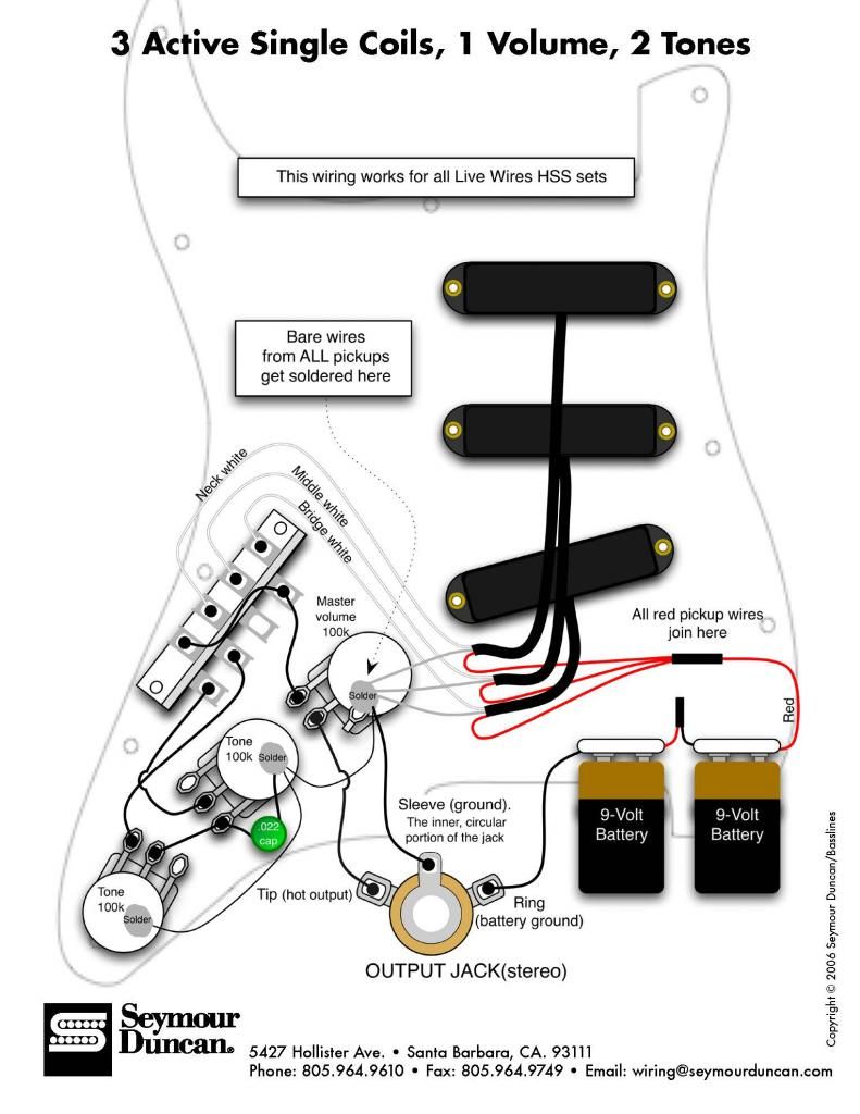 1 or 2 pickup wiring kit for active pickups . In The Box. 2 Volume Pots 2 Tone Pots 1, 12b Output Jack w/Battery Clip 1 Output Cable 4 Interconnect Cables 2 Pickup Cables. Reviews 7. Write Your Own Review. ... + Top Wiring Diagrams + Dealer Locator + Online Retailers; Ordering+Shipping + EMG Certified Pre-owned