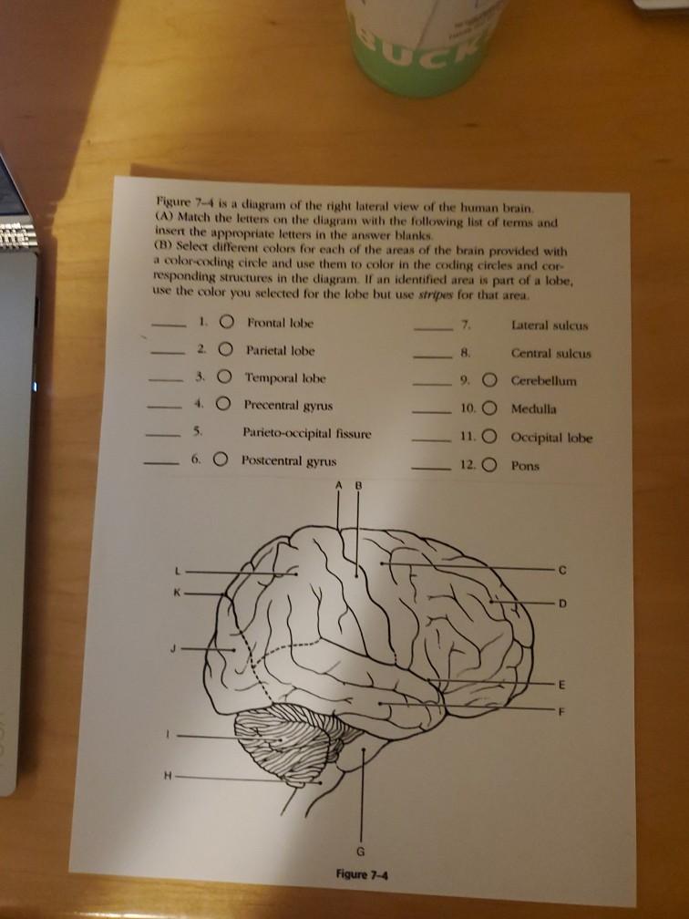 35 match the letters on the diagram of the human brain