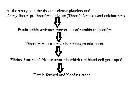Blood Clotting: Mechanisms and Stages | Blood | Hematology ... Blood clotting (technically "blood coagulation") is the process by which (liquid) blood is transformed into a solid state. This blood clotting is a complex process involving many clotting factors (incl. calcium ions, enzymes, platelets, damaged tissues) activating each other. Stages of Blood Clotting: 1. Formation of Prothrombinase: