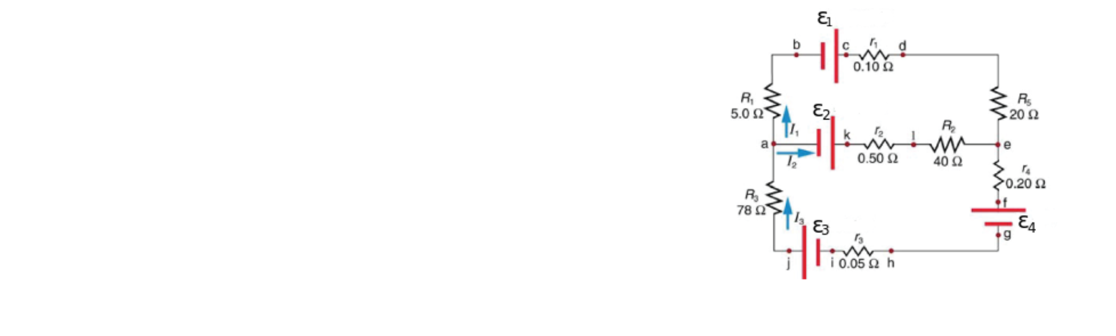 Solution: The circuit shown in the sketch ... | Clutch Prep Q. Consider the circuit in the diagram, with sources of emf listed below.Randomized Variablesℰ1 = 21 Vℰ2 = 49 Vℰ3 = 9.5 Vℰ4 = 39 Va) Find I1in amps.B)... Q. Determine the current in each branch of the circuit shown in Figure P28.19.