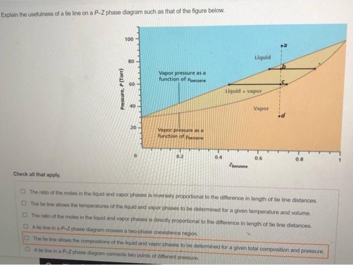 FEC: Pxy (Phase) Diagrams - University of Pittsburgh Tie lines are the name given to lines that bridge the "coexistence space" in a phase diagram. In the example above the lens-shaped region between the line and the curve is a "no mans land" that separates the vapor phase compositions from the liquid phase compositions. The bi-colored line is an example of a tie line.